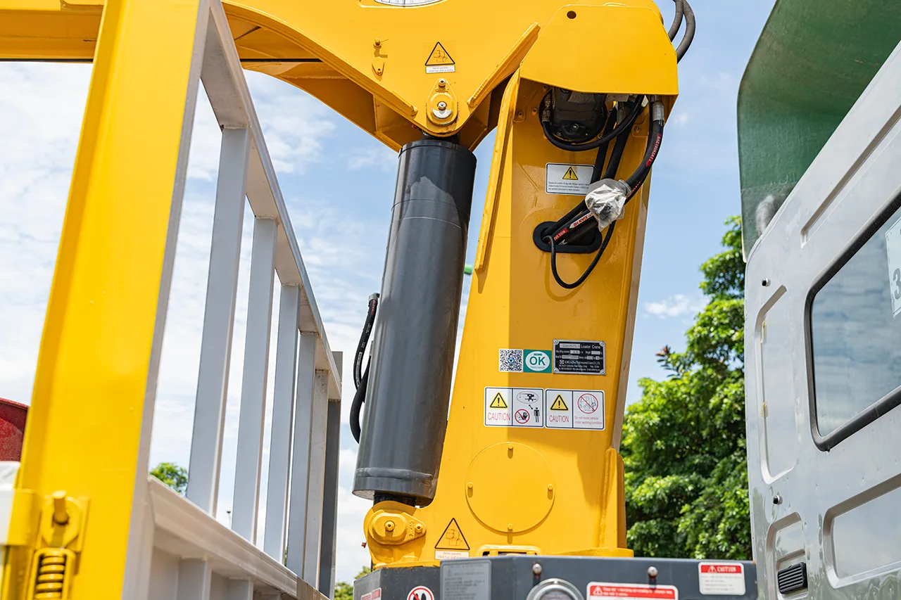 - Thiết kế gọn gàng: Nhờ thiết kế 5 đốt, cẩu dễ dàng được lắp đặt trên các loại xe tải khác nhau, mang lại tính di động cao và sự linh hoạt trong việc di chuyển giữa các công trường.