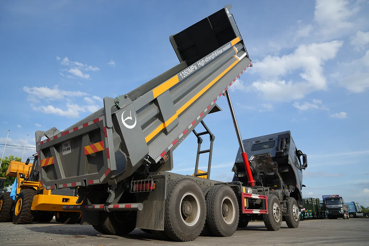 • Vật liệu làm thùng: Thép chống mài mòn NM 450 theo tiêu chuẩn quốc tế
